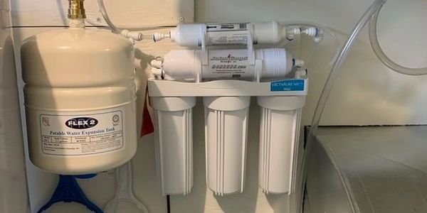 A Reverse Osmosis system delivers purified water. Reverse osmosis removes many contaminants from water, including dissolved solids, lead, nitrates, sodium, and sulfate. Reverse osmosis removes disease-causing organisms and most chemical contaminants. It can be used in conjunction with other filtering stages, such as activated carbon, to reduce the level of pesticides, dioxins, and volatile organic compounds. With the addition of a UV sterilization system most types of bacteria can be removed.